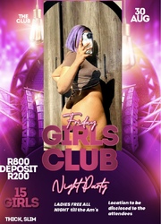 WhatsApp 0680741564 for more details and to be added on the event group. 10 girls in attendance and 30 guys maximum book your slot and don’t waste time. All you need is R800 and a bottle of alcohol.
